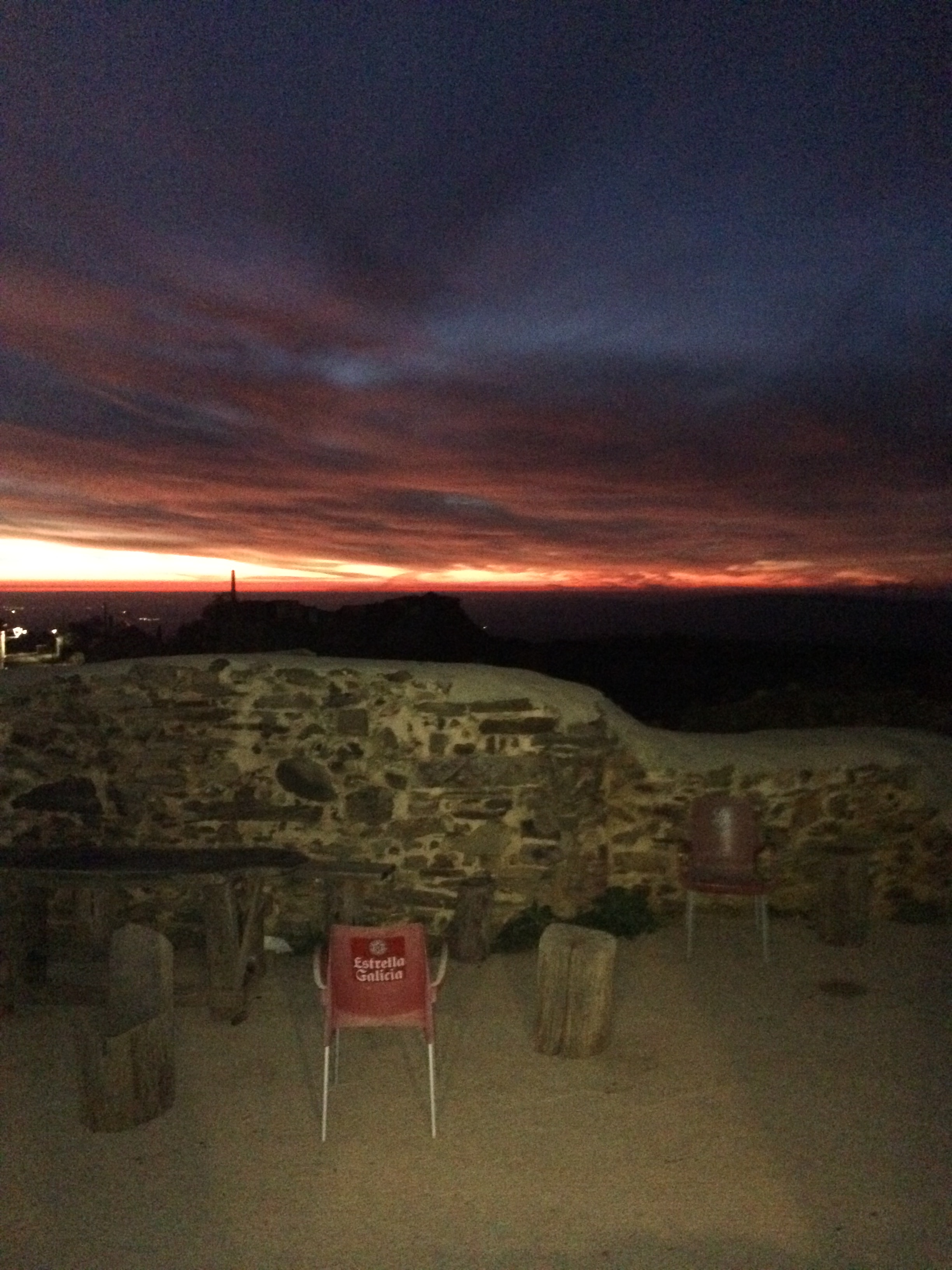 Thursday October 15 Day 4 – walked from Santa Catalina de Somaza / Albergue El Caminante to Foncebadin / Albergue Monte Irago. It was uphill most of the way it was quite the walk. Here’s the sunrise at Foncebadin.